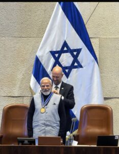 प्रधानमंत्री मोदी ने इज़रायली संसद ‘नेसेट’ को संबोधित किया। नेसेट में उनका स्वागत ‘मोदी-मोदी’ के नारों से किया गया। इजरायल सरकार ने पीएम मोदी को “स्पीकर ऑफ द नेसेट मेडल” से सम्मानित किया।